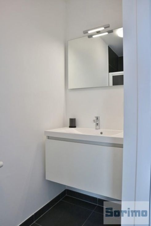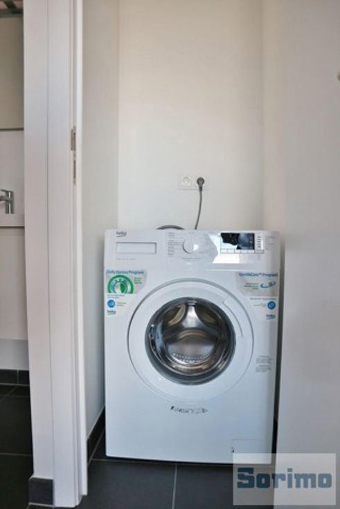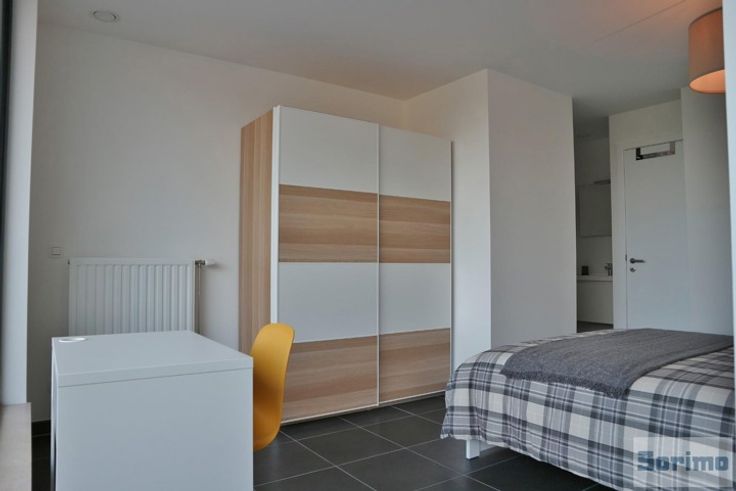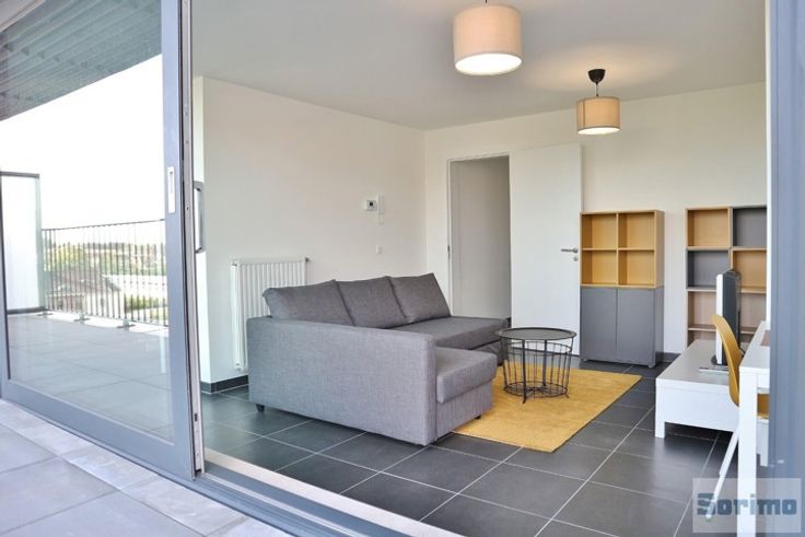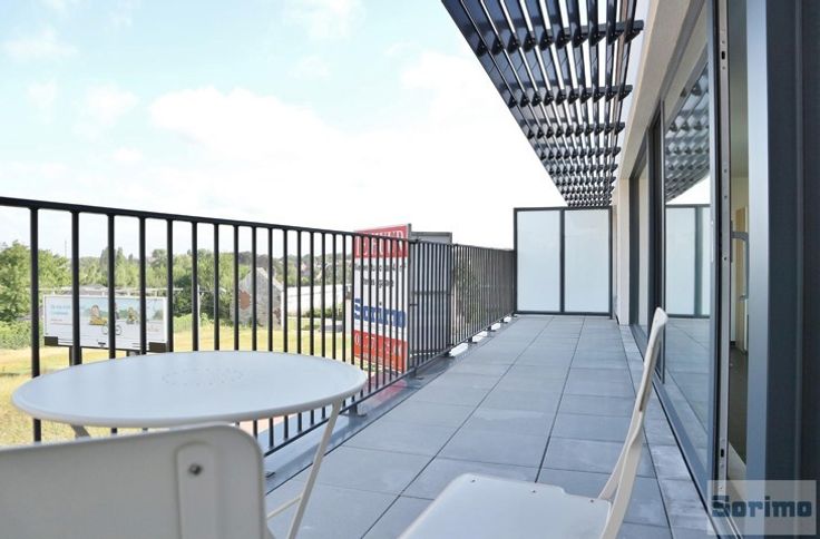 A proximité immédiate de l'OTAN, de tous les commerces et des transports en commun, appartement neuf meublé de +/- 55m² se composant comme suit: hall d'entrée, séjour de +/- 12m², cuisine américaine avec accès terrasse de +/- 17m², espace à coucher de +/- 18m² comprenant une chambre et une douche, WC séparé et local de rangement. Emplacement de parking intérieur. Provisions mensuelles de charge de 100€ (communs). PEB B. Libre immédiatement.
