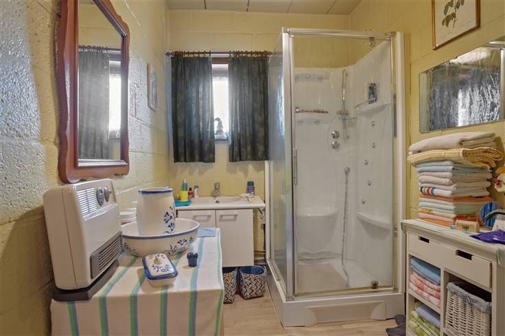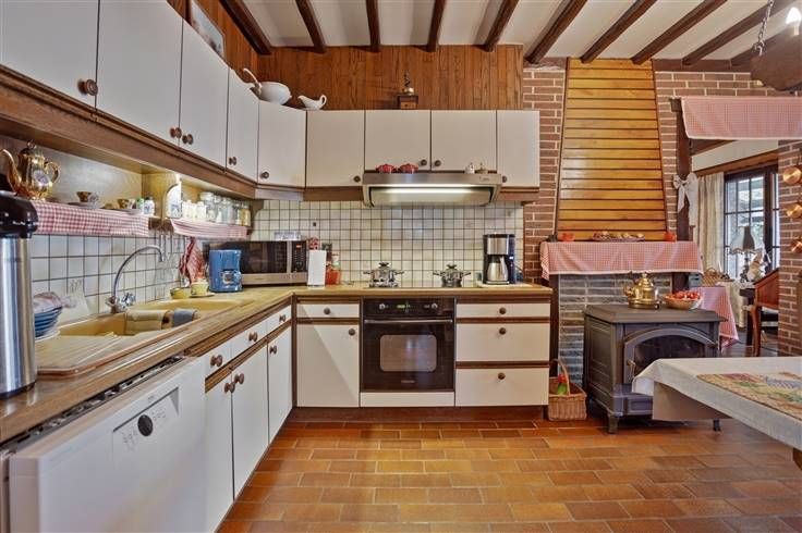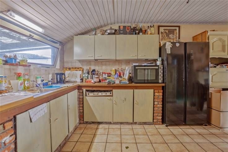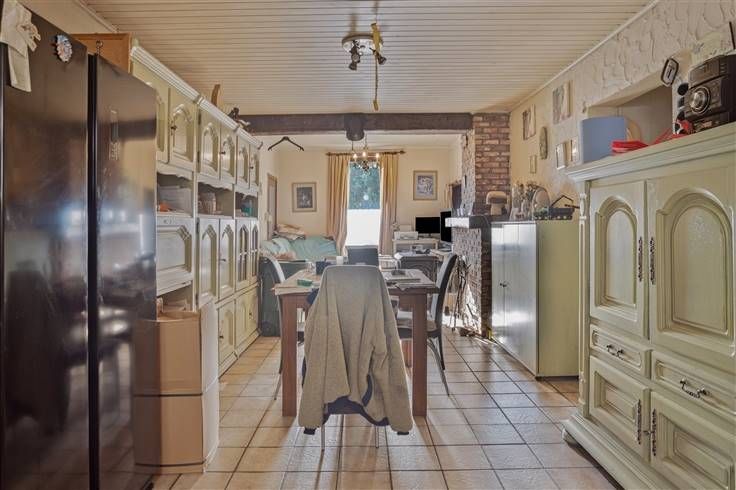 Deze charmante, te renoveren woning met groene vergezichten beschikt over een bewoonbare oppervlakte van 230m² en is gelegen op een prachtig perceel van maar liefst 1ha 8a 8ca vlakbij de vaart. Momenteel wordt deze woning als tweewoonst gebruikt. De indeling van het eerste gedeelte is als volgt: op het gelijkvloers bevindt zich een inkomhal, een woonkamer (40m²) voorzien van een kachel, een keuken (5,5 x 3,1m) uitgerust met een keramische kookplaat, dampkap, oven, koelkast, vaatwasmachine, en een dubbele spoelbak, een nachthal, één slaapkamer (3,4 x 4,7m) en een badkamer voorzien van een douche, toilet en een enkele wastafel. Verder is er een berging-wasplaats met aansluitingen voor een wasmachine en plaats voor een droogkast, een overdekt terras en een schuur (8 x 3,3m) met een zolder (68m²) bereikbaar via een vaste trap. De indeling van het tweede gedeelte is als volgt: een inkomhal, een woonkamer uitgerust met een oliekachel en een open keuken (10 x 3,5m) voorzien van een dampkap en een dubbele spoelbak, één slaapkamer (3,5 x 2,8m), een badkamer uitgerust met een ligbad en een wastafel en een berging-wasplaats met aansluitingen voor een wasmachine en plaats voor een droogkast. Bovendien beschikt deze woning over een mooie tuin met groene vergezichten, achterliggend een weide, een garagebox en een werkhuis. Renovatieplicht is van toepassing. Wenst u deze eigendom te bezichtigen? Contacteer ons gerust voor een afspraak. 015 711 000 - info@clavisvastgoed.be