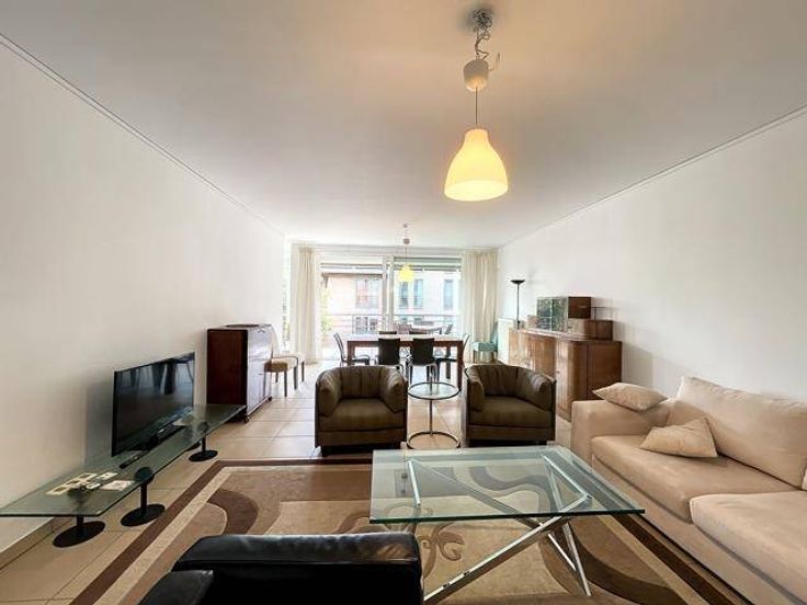 À deux pas du parc de Woluwe et de l’école Européenne, situé au 1ER étage d’un immeuble moderne et dans une rue calme à sens unique, superbe appartement MEUBLÉ 2 chambres de ± 125m² avec terrasse et parking intérieur. Composition : hall d’entrée, spacieux et lumineux séjour de ± 40m² avec accès à une belle terrasse orientée SUD-OUEST de ± 10m², cuisine super-équipée de ± 17m² avec espace salle à manger et buanderie attenante, hall de nuit, deux grandes chambres de ± 20 et 17m², salle de bains de ± 8m² avec wc, salle de douche, wc séparé, cave. Parking intérieur en supplément de 100€/mois. Détails : construction de 2007, PEB C+, porte blindée, vidéophone, meublé avec goût et entièrement équipé, libre immédiatement. Charges : 170€/mois comprenant ascenseur, entretien des parties communes et des abords, électricité des communs, Handyman, service poubelles. Nombreux commerces à proximité : Pro Marcel Thiry, Cora, Proxy Woluwe, Cameleon, Woluwe Shopping Center, … Écoles : EPHEC, École européenne de Bruxelles II, UCLouvain. Transports en commun : bus 29, 42, 45, 79, 178, station Roodebeek. Annonce et indications non contractuelles, sous réserve de modifications. Info : est@macnash.com – Tel : 02 779 99 99 – ID 271900