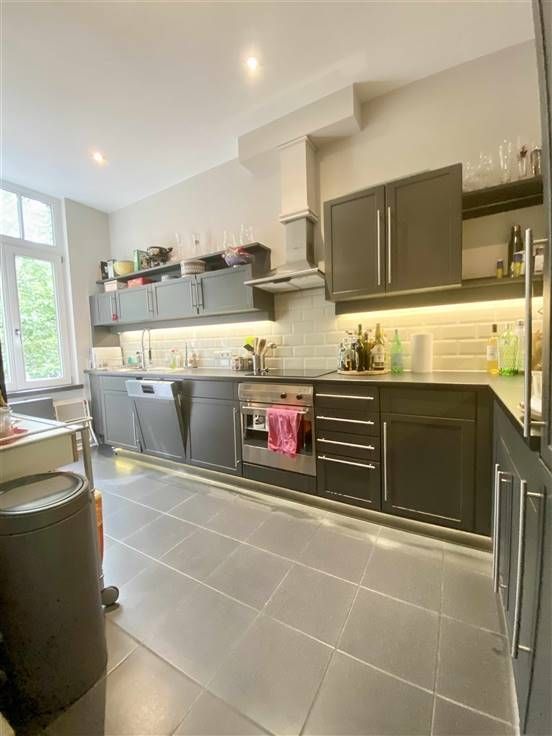 Beschrijving: Prachtig Duplex penthouse, ideaal gelegen aan de Molièrelaan, op een steenworp afstand van het Brugmannplein, elegant gerenoveerd, met een oppervlakte van 175 m² in een herenhuis met een prachtig terras van 36m2. Samenstelling: Woon-/eetkamer (46 m2) met houten vloer, volledig ingerichte keuken, 3 slaapkamers (20, 16 en 16m2) waarvan één met kleedkamer (5m2), 2 badkamers, gastentoilet, wasruimte, kantoor, dubbel terras 38 m², kelder. Dubbele beglazing en parketvloer overal. Mogelijkheid om een parkeerplaats vlakbij de woning te huren voor € 250/maand (onder voorbehoud van een afzonderlijke huurovereenkomst)