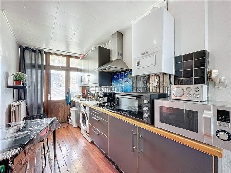 Il se compose au rez-de-chaussée d’un espace commercial en bon état, équipé d’une cour privée et de sanitaires, offrant un cadre parfait pour l’exploitation du commerce actuel. Le bâtiment est bien entretenu et dispose de double vitrage ainsi que de compteurs individuels pour chaque unité, garantissant une gestion locative simplifiée. L’installation électrique est conforme aux normes, offrant une tranquillité d’esprit supplémentaire.