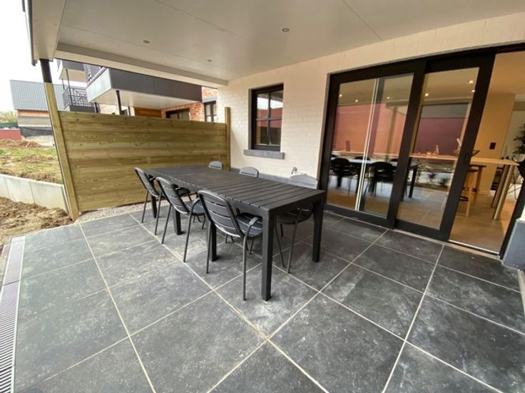 Nabij het treinstation van Terhulpen en het centrum, in een nieuwe luxe residentie in aanbouw, mooi gelijkvloers van 107m2 + terras van meer dan 15m2: inkomhal, wc, wasplaats, aangename living met volledig ingerichte keuken, 2 slaapkamers, badkamer met bad en douche - het appartement wordt volledig afgewerkt met kwaliteitsmaterialen - afwerkingen naar keuze (keuken - badkamer - vloer) - kelders en parkeerplaatsen in de onderbouw - liften - tuin - evt. btw 6% volgens voorwaarden - oplevering voorzien LENTE 2024 - info en afspraak FINDIMMO 02/353 05 35 - info@findimmo.be