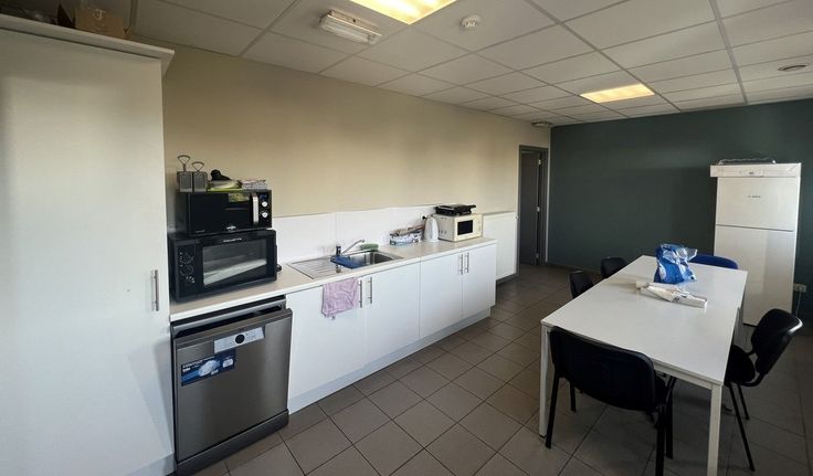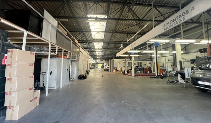 Specificaties: vrije hoogte 10m, polybetonvloer met draagkracht 5T/m², 2 laadkades, 1 sectionaalpoort, ruime autoparking en manoeuvreerruimte voor vrachtwagens