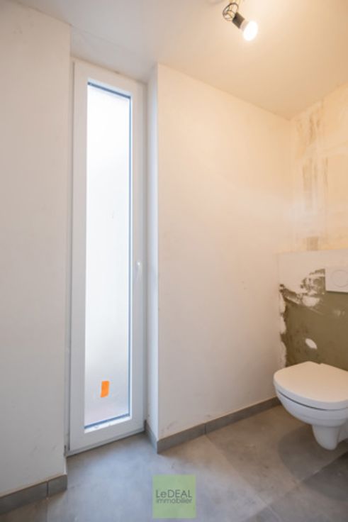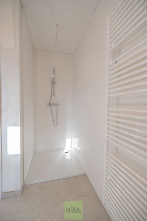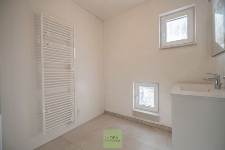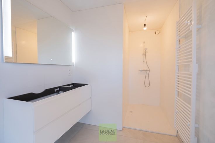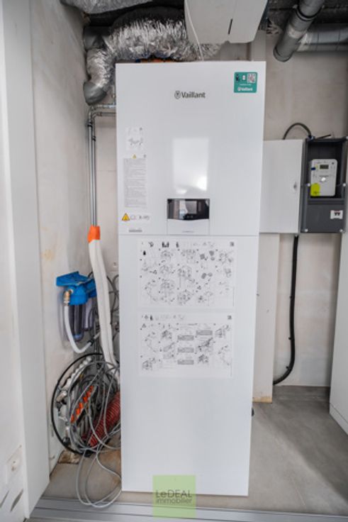 Cette maison PEB A vous offre une bonne isolation, du système de chauffage par pompe à chaleur (chauffage au sol), radiateur électrique dans les salles de bain (sèche serviette), ventilation simple flux, châssis DV en PVC et en ALU pour le coulissant, citerne d’eau de pluie (5,200L) et une toiture plate en EPDM. Le trop plein d’eau pluviale est drainé à l’arrière et les eaux usées via une fosse septique et pompe de relevage à l’égout public.