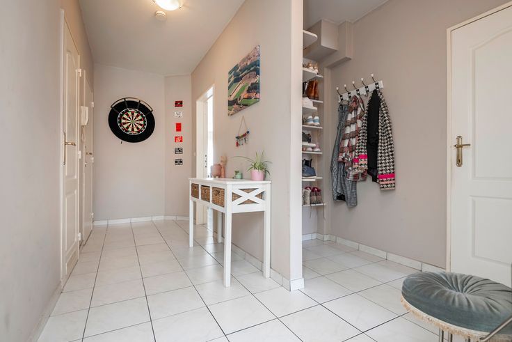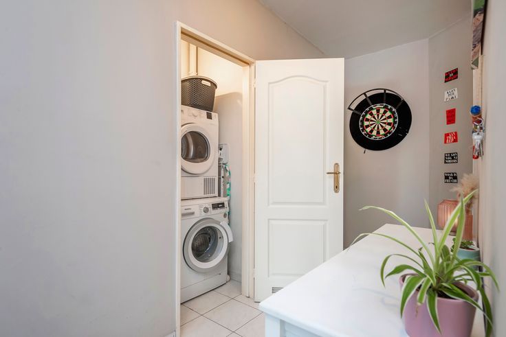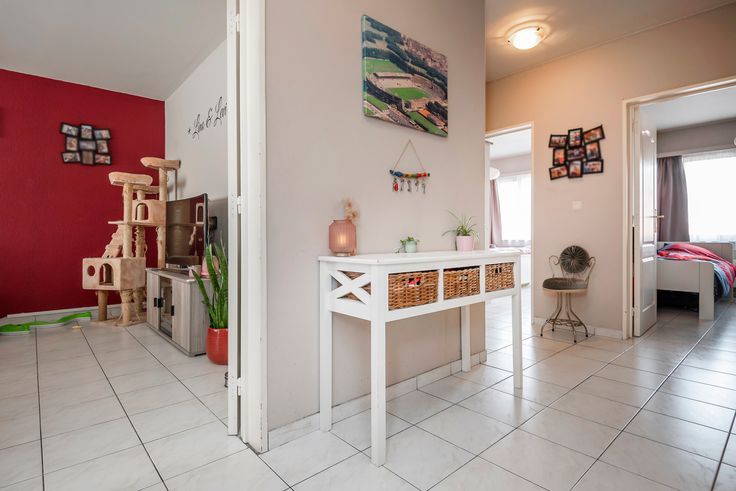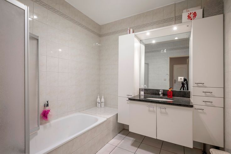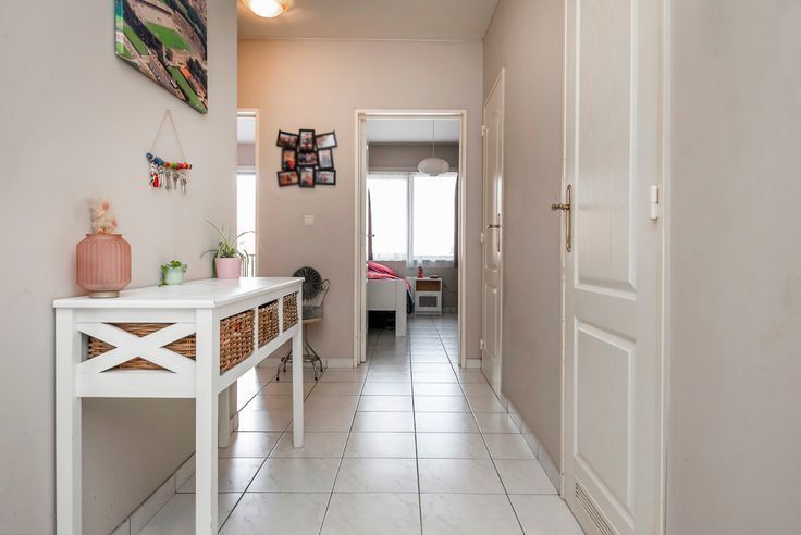 In de hal is er een vestiaire voorzien en ook de toegang tot een wasplaats waar wasmachine en droogkast kan worden geplaatst. De badkamer beschikt over een ligbad met douche en lavabo. Er zijn 2 slaapkamers waarvan de grootste toegang verleent tot het mooie terras.