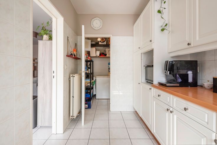 Goed onderhouden appartement op een eerste verdieping, bereikbaar is via een open mooie traphal. Vanuit de hal komen we in de lichtrijke living met aansluitend een zeer ruime, volledig geïnstalleerde keuken. Een grote berging is eveneens bereikbaar vanuit de keuken.