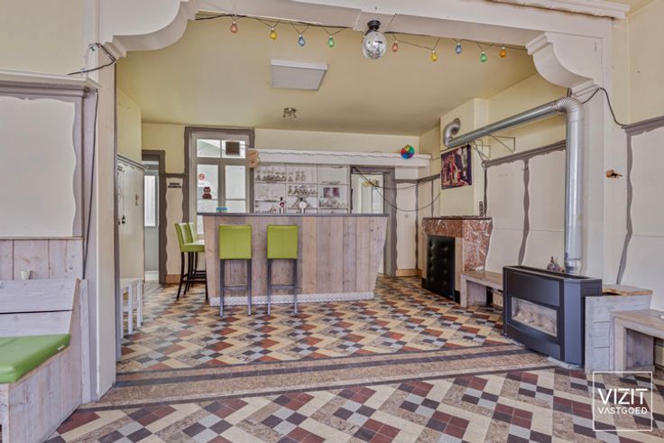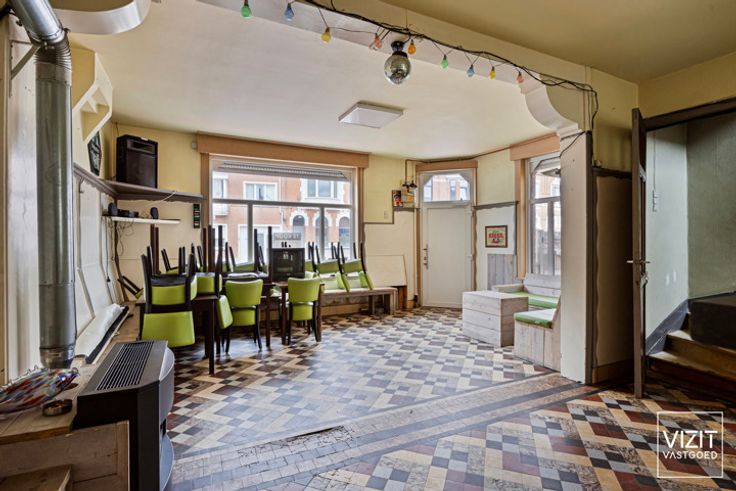 Dit handelshuis, momenteel ingericht als café 'De Groeneweg', biedt ruime mogelijkheden voor commerciële activiteiten. De indeling op het gelijkvloers omvat een café/commerciële ruimte (41 m²), een keuken (9 m²), een berging (7 m²), toiletten (16 m²) en twee garages (elk 43 m²) die momenteel zijn ingericht als zaal. Op de eerste verdieping bevinden zich een nachthal, een woonkamer (24 m²), een keuken (8 m²) en een badkamer (7 m²). De tweede verdieping omvat een nachthal en twee slaapkamers (22 m² en 13 m²). Verder beschikt het pand over een zolder en een kelder. Het dak en de ramen werden in 2017 vernieuwd, wat zorgt voor een goede staat van onderhoud. Dit pand biedt tal van mogelijkheden voor diverse commerciële doeleinden in een aantrekkelijke omgeving. Bekijk de documenten op www.vizitvastgoed.be. VCRO: Wg/Vg/Gvv/Gvkr/Gmo - A score: A - P score: A