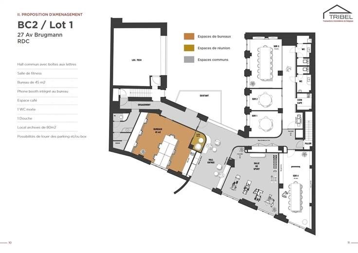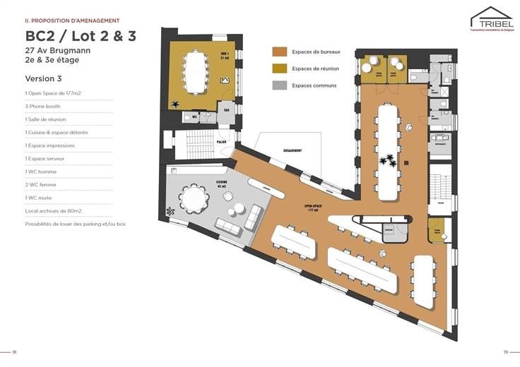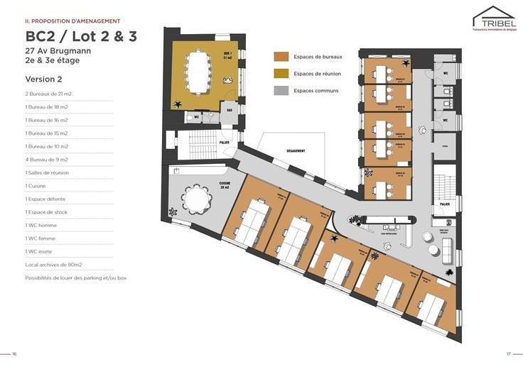 SAINT-GILLES limite Ixelles (MA CAMPAGNE), non loin de la pl.Stéphanie et de l'av.Louise, superbe plateau de bureaux de 409m² offrant une variété d'implantation possible. Actuellement le plateau se compose de bureaux et de salles de réunion séparées, de toilettes H & F et d'une cuisine. Possibilité de louer des parkings extérieurs pour 120€/mois et/ou des garages box pour 170€/mois. Espace fitness (au RDC) pour les locataires des bureaux (inclus dans le loyer). Loyer annuel: 81.756€*. Garantie locative de 6 mois de loyer. Libre le 1er janvier 2025. Pour conditions et visites: 02 344 88 84 / rent@tribel-immo.be / www.tribel-immo.be *PI (6,54€/m²) + charges (23€/m²) + taxes régionales (1,45€/m²) sont à charge du preneur