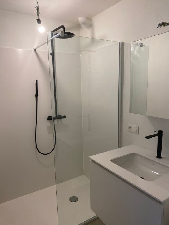 Er is een apart toilet, badkamer met douche en een keuken.