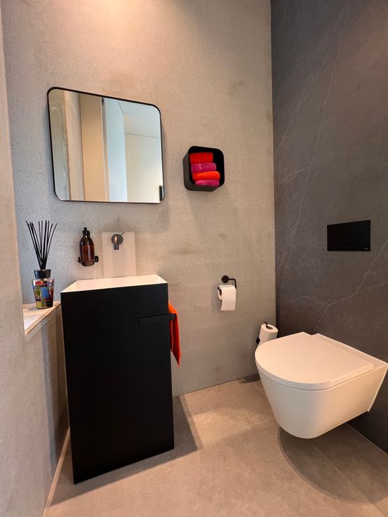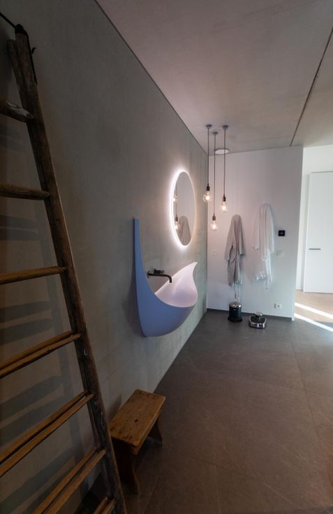 De tweede badkamer is voorzien van inloopdouche en design lavabo van Antonio Lupi.