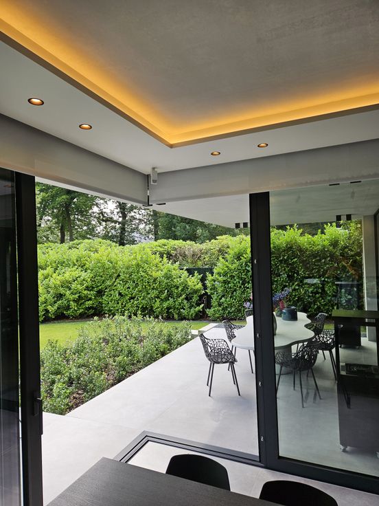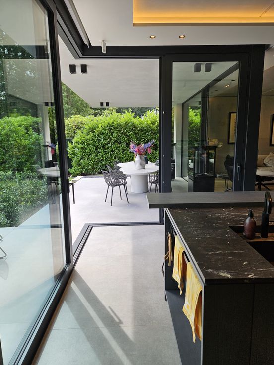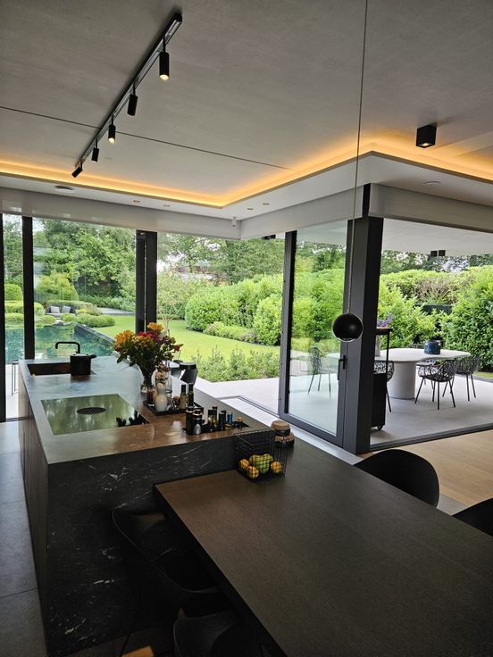 Instapklare moderne nieuwbouwvilla (2021) met grote raampartijen, die zorgen voor een maximale verbinding met tuin en overvloed aan natuurlijk licht.