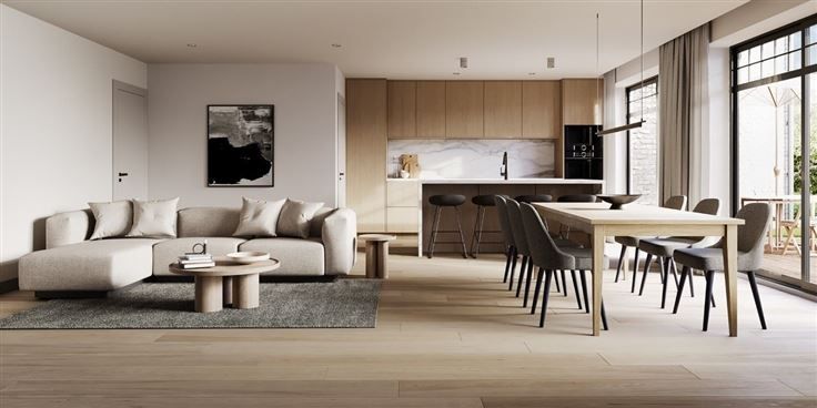 RESIDENTIE DERGENT Wonen in Gelrode: gezellig, landelijk én centraal. De ideale mix van landelijk wonen en de voordelen van een dorpskern? Die vind je in Gelrode. In deze gezellige deelgemeente van Aarschot realiseert Ver-Com momenteel een bijzonder project: Residentie Dergent ; een gloednieuw gebouw met zes appartementen, voorzien van alle luxe. Het project bevindt zich in de rustige dorpskern van Gelrode, omgeven door tal van mooie fiets- en wandelroutes in de nabijheid van de Demer en zijn omliggende natuur. Door de ideale, centrale ligging is het centrum van Aarschot op slechts een steenworp verwijderd. Op amper 10min fietsafstand van de residentie sta je in het hart van de bruisende stad en enkele minuten op/afrit autosnelweg. Het betreft hier het gelijkvloer appartement rechts, met inkom, woon-eetplaats, ing.keuken, berging/wasplaats, wc, ing.badkamer, 2 slaapkamers, ruim terras en tuin. De binnen afwerking appartement is volgens eigen keuze en smaak en elk appartement beschikt over ind.zonnepanelen, vloerverwarming, Ventilatie D systeem. Extra: Gratis ondergrondse fiets stalling. Ondergrondse staanplaats 21.000€. Kelder berging 4.000€. Voor meer info en vrijblijvende afspraak bel Ronny Storms 0487/66 33 60 of mail ronnystorms@janssenenjanssen.be