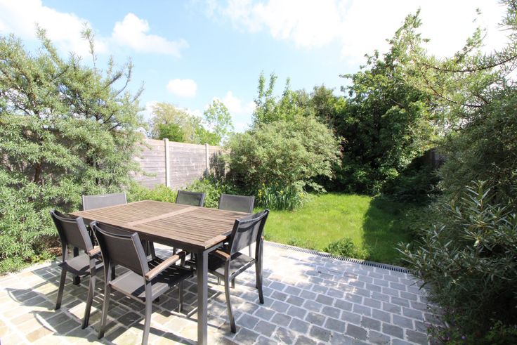 De tuin is onderhoudsvriendelijk en groen aangelegd met een terras.