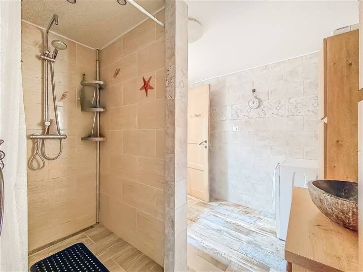 Au rez: living, cuisine, nouvelle salle de douche avec partie buanderie.