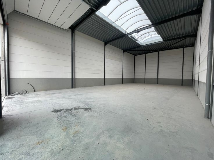 De loods heeft een oppervlakte van 200m² en wordt casco verkocht. Inrichting kan volledig naar wens van de klant gebeuren.