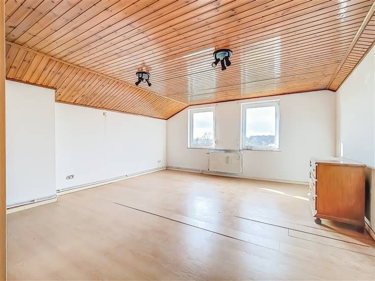 Sorry er is geen nederlandse vertaling beschikbaar. SITUEE DANS UNE RUE TRANQUILLE, BONNE MAISON 3F SE COMPOSANT COMME SUIT: Au rez: living, cuisine équipée, salle de bains, buanderie, WC séparé, accès latéral avant. Au 1er étage: hall de nuit, deux chambres dont une spacieuse, pièce utilisable comme dressing ou espace de rangement. Grenier potentiellement aménageable. Cave. Jardin avec terrasse couverte. Equipement: DV PVC et volets, CC mazout, alarme, parlophone, ... Maison située dans un cul-de-sac, parking possible à +-150m Habitation à rafraichir combinant l'avantage d'une situation au calme à la proximité des voies rapides de communication. PEB: D-PEB N°:20240123017540. Faire offre à partir de 150 000€.