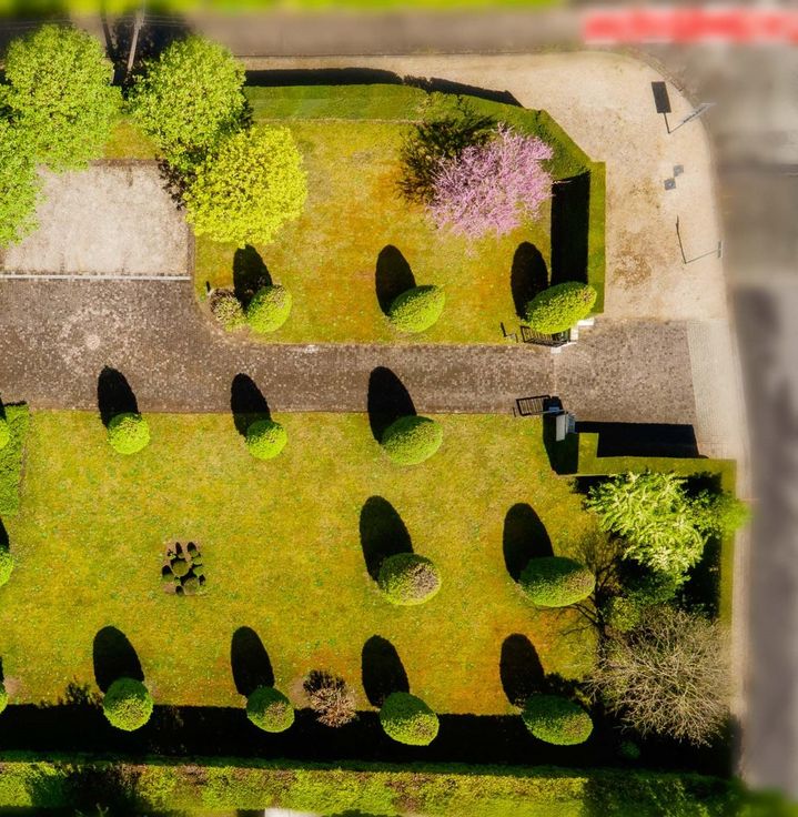 De oprit die op de foto's zichtbaar is, wordt afgeschaft voor de villa (die via de Harelbekestraat zijn oprit zal realiseren).