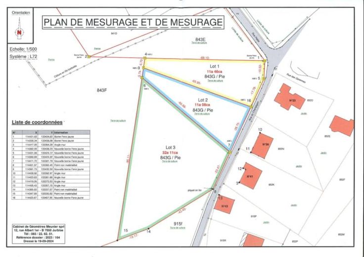 A vendre, terrain au lieu-dit "Petite Vacresse" à Herchies - à front de la rue du Champignon, divisé en deux lots : - Lot 1 pour une contenance de 11 ares 46 ca (façade à rue : 28,30 m) - rue du Champignon, face du n°23 de la rue des Garennes. Identifiant parcellaire : 53040 C 843 H P0000 - Lot 2 pour une contenance de 11 ares 08 ca (façade à rue : 28,75 m) - rue du Champignon, face au n°39. Identifiant parcellaire : 53040 C 843 K P0000 Pour les informations urbanistiques, s'adresser à l'Urbanisme de Jurbise, en mentionnant l'identifiant parcellaire ci-dessus.