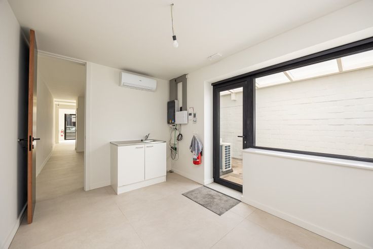 Binnenin is het pand volledig vernieuwd met vooraan design verlichting, mooie tegelvloer en achteraan keukenruimte met apart toilet.