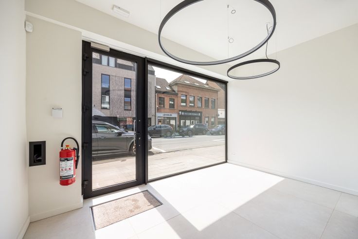 Volledig vernieuwd, energiezuinig handelspand 98 m² in een kleinschalig appartementsgebouw.. Het is gelegen op een zeer commerciële locatie in centrum Schilde met brede vitrine.
