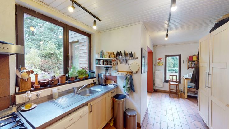 Découvrez cette charmante maison 3 façades, idéalement nichée dans un écrin de verdure, offrant calme et tranquillité avec une circulation limitée aux riverains. Elle se compose d’un hall d’entrée menant à un grand séjour lumineux et d’une véranda conviviale. Vous y trouverez également une cuisine fonctionnelle, une salle de bain, trois chambres et un bureau. Chaque pièce offre une vue imprenable sur le jardin environnant. À l'extérieur, vous profiterez d'un jardin joliment aménagé avec un potager, d'une terrasse idéale pour vos moments de détente, et d'un garage. La parcelle s'étend sur 800 m², offrant un bel espace pour profiter de la nature. En outre, cette propriété présente l'avantage de frais d'enregistrement réduits, grâce à un revenu cadastral de seulement 620 €.