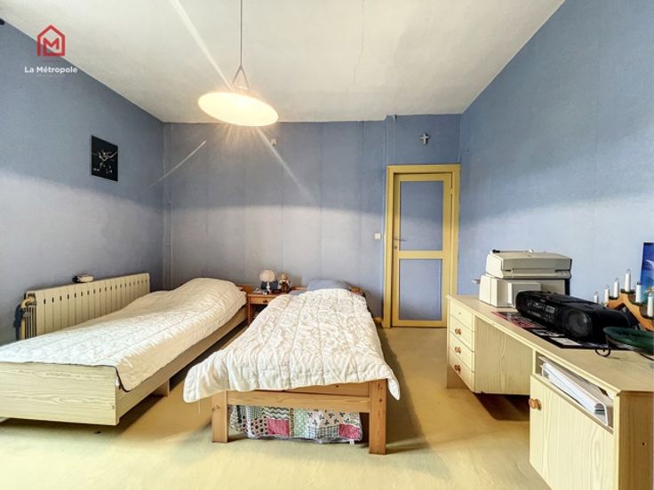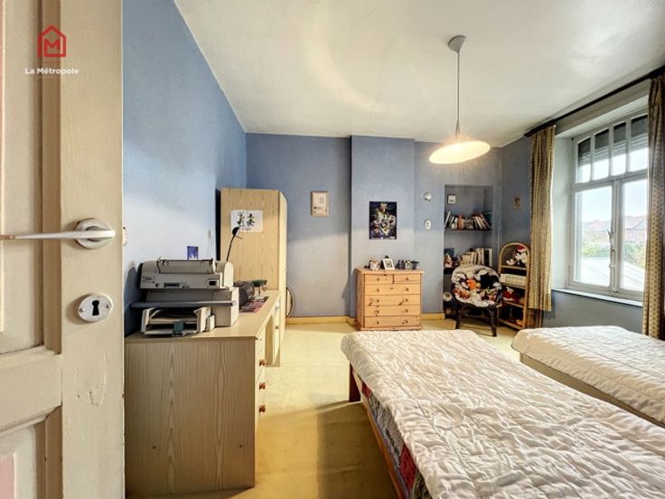 La Métropole Immobilier est ravie de vous présenter à la vente cette spacieuse maison pleine de potentiel idéale pour accueillir une grande famille ou même une profession libérale. Cette maison est proche de toutes les commodités ainsi que des grands axes et est aménagée comme suit : Rez-de-chaussée : En entrant, vous découvrez un premier salon (ancien salon de coiffure facilement transformable pièce de vie supplémentaire ou en espace commercial ou en bureau), deuxième salon, une salle à manger, un W.C. séparé, une salle de bain et une cuisine lumineuse. Premier étage : Un hall de nuit dessert trois grandes chambres et donne accès, via un escalier indépendant, à un grenier. Deuxième étage : Un grand grenier aménageable. Extérieur : Terrasse et un magnifique jardin, parfaits pour se détendre et profiter des beaux jours. Aspects techniques : Chauffage central au gaz, raccordement à l'égout, châssis en PVC/Bois avec SV. ou DV, feu ouvert. Ne manquez pas cette opportunité rare de combiner vie privée et activité professionnelle dans un cadre agréable et pratique. RC : 692€ (TAUX RÉDUIT POSSIBLE) -> PEB : F PRIX : FAIRE OFFRE A PARTIR DE 119.000€ SOUS RESERVE D'ACCEPTATION DU PROPRIETAIRE. Celui-ci ne sera automatiquement tenu par la plus élevée recueillie, mais par celle qu'il jugera la plus opportune selon ses exigences. Plus d'infos ou visite: -> 071/123.950 ou par mail : mo@lametropole.be Descriptif à titre informatif et non contractuel, susceptible de modification.
