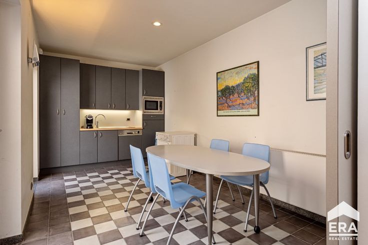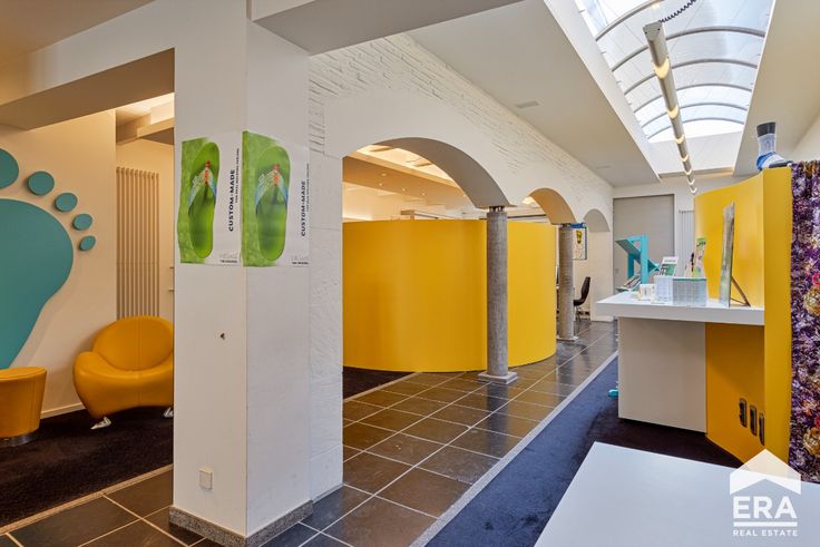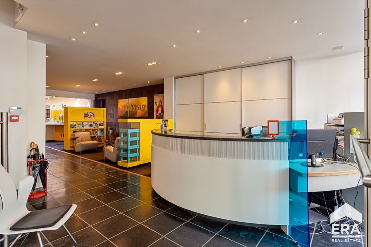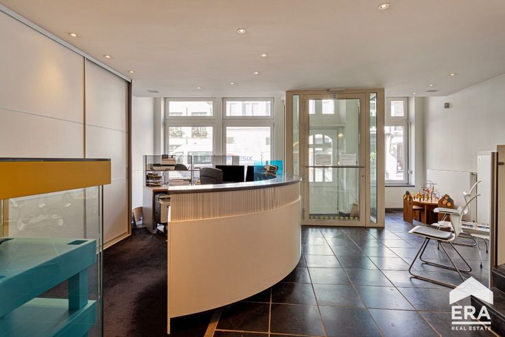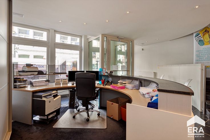 trendy gerenoveerde handelsruimte volledig ingericht met ontvangstbalie, wachtruimte, vestiaire, toilet, een grote polyvalente ruimte om bijvoorbeeld burelen te plaatsen. Achteraan bevindt zich nog een handige keuken met alle voorzieningen en een leuke stadskoer.