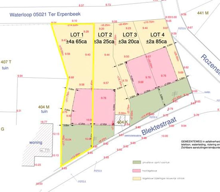 In de regio Hofstade worden 4 bouwgronden te koop aangeboden, ideaal voor het realiseren van halfopen woningen. Deze bouwgronden bieden de perfecte mogelijkheid om jouw droomhuis te bouwen in een rustige, groene omgeving, met een uitstekende bereikbaarheid. Elk perceel biedt voldoende ruimte voor het bouwen van een ruime halfopen woning met tuin. De bouwgronden zijn geschikt voor moderne woningen, waarbij je de vrijheid hebt om de indeling en stijl volledig naar eigen smaak te bepalen.  Gelegen in het gezellige Hofstade, deelgemeente van Aalst, bevinden deze bouwgronden zich in een rustige woonwijk, dichtbij scholen, winkels en openbaar vervoer. De nabijheid van de E40 zorgt bovendien voor een vlotte verbinding naar Brussel en Gent.  Ben je op zoek naar een plek om je eigen huis te bouwen? Voor meer info en/of een bezoek, contacteer ons via aalst@immotijl.be of 053 42 46 99