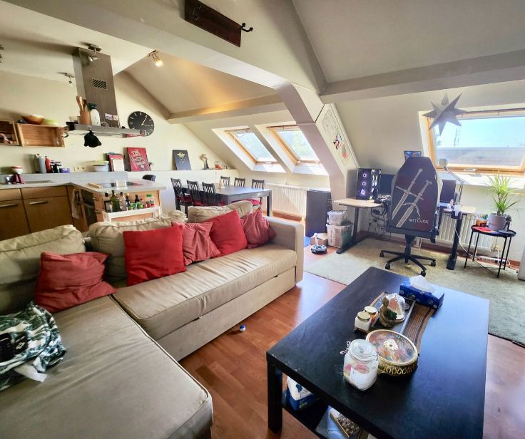 - Compromis ferme signé, acte attendu sous peu -, Situé proche de toutes les commodités au 3ème et dernier étage d’une petite copropriété (sans ascenseur, peu de frais), ce charmant appartement en très bon état se compose d’un espace de vie lumineux : salon, salle à manger, cuisine équipée ; un hall de nuit desservant la salle de bain (baignoire, lavabo, wc) et la grande chambre avec son débarras. Double vitrage, 51m2 PEB C, chauffage central au gaz avec chaudière individuelle, système électrique certifié conforme, compteurs individuels : eau, gaz, électricité,… à découvrir sans tarder ! Prix indicatif : 125.000€, actuellement loué 590€ +10€ de provision pour charges communes – Prix, superficies, publication à titre indicatif, non contractuels –