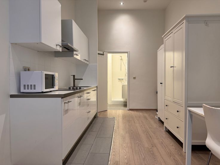 De studio straalt comfort uit met een eenvoudige maar stijlvolle inrichting en is volledig gemeubileerd en dus instapklaar. De keuken is uitgerust met moderne voorzieningen, waaronder een vaatwasmachine, microgolfoven, elektrisch kookvuur, dampkap en spoelbak. De aparte badkamer voegt extra gemak toe, met een douche en een eigentijds lavabomeubel.