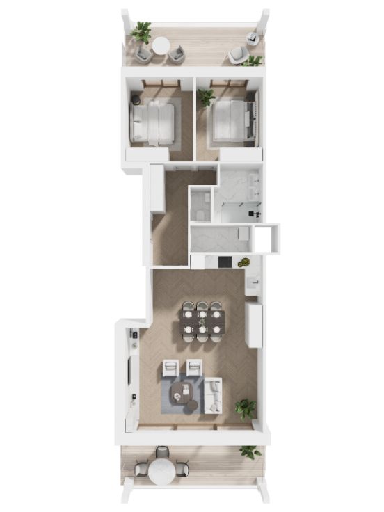 Maak kennis met SKY Garden Two, de laatste fase van het stadsvernieuwingsproject SKY District in Oostende. Hier beleeft u een uniek samenspel van stad en zee met een onbelemmerd zicht op de groene binnentuin van SKY District. Geflankeerd door de twee ranke SKY Towers die de skyline van Oostende herdefiniëren, SKY Harbour die uitkijkt over de prachtige jachthaven, SKY Garden One en SKY Bridge. SKY Garden Two dat zijn 27 stijlvol afgewerkte appartementen gespreid over 7 verdiepingen. Deze 27 doorzonappartementen beschikken over een privé terras vooraan en achteraan met langs de ene kant zicht op het groene hart van SKY District. Op verdiepingen 1 t.e.m. 6 zijn er telkens 4 appartementen met een bewoonbare oppervlakte van 89m² - 111m². U hebt hier de keuze tussen twee - of drieslaapkamerappartementen. Op de bovenste verdieping 7 bevinden zich 3 penthouses met een bewoonbare oppervlakte van 89 - 101m² en twee slaapkamers.