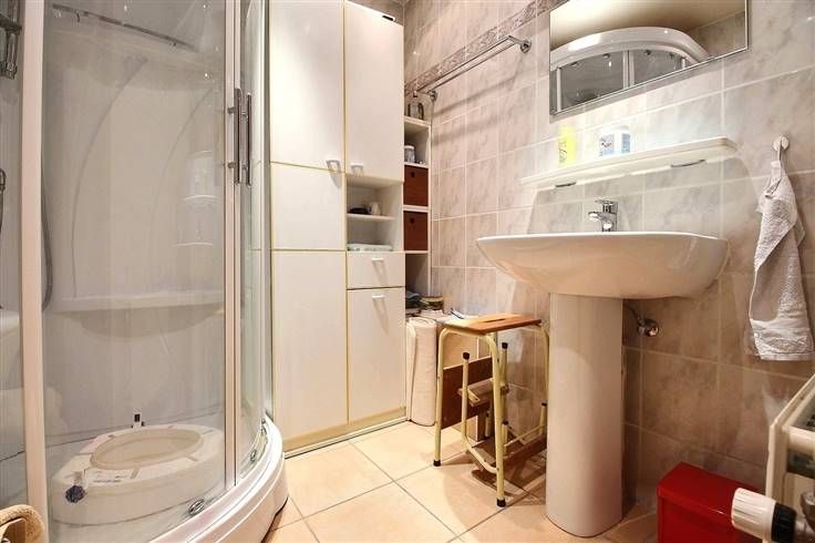 Le hall d'entrée dessert un grand garage, un débarras et la chaufferie. Au premier étage, vous serez séduit par un grand et lumineux séjour de ± 35m² et sa cuisine équipée, ouverte sur celui-ci. Une salle de douche et une chambre de ± 13m². Wc séparé.