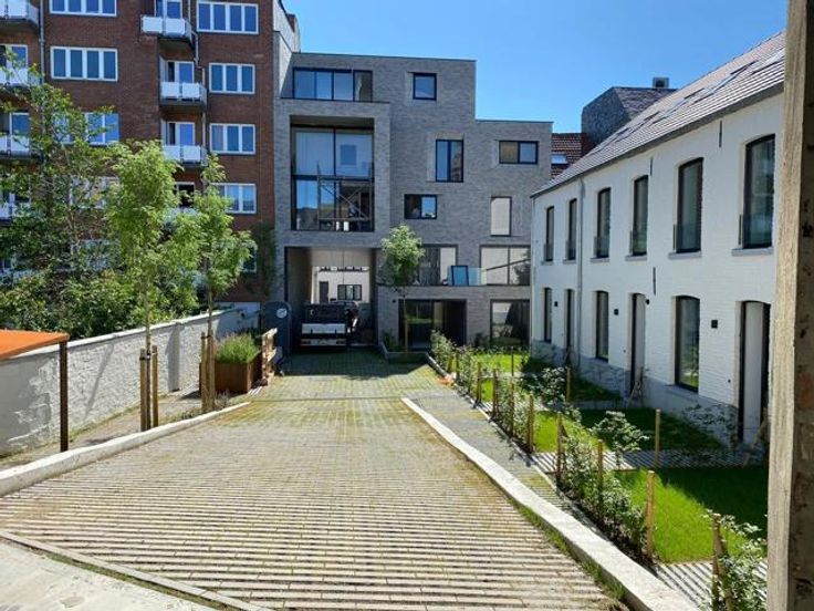 De loods is achterin gelegen aan de Naamsesteenweg op een klein woonerf.