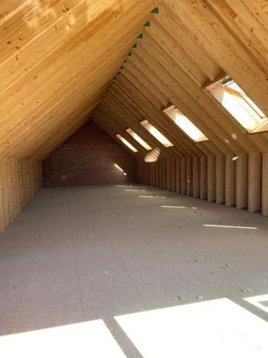 Op de eerste verdieping is er eveneens een plateau van een 135m² onder dak.