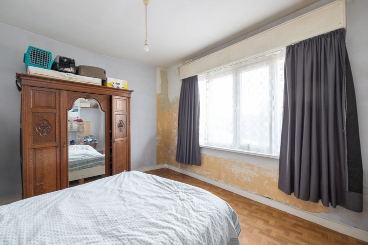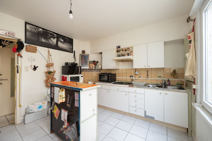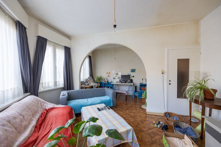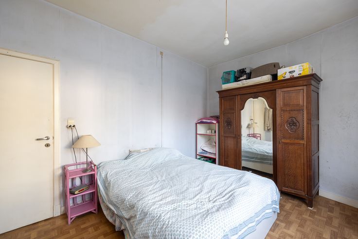 Uitgestrekt over de eerste en tweede verdieping, vinden we deze ruime duplex (166m²) . Momenteel is enkel de eerste verdieping ingericht met o.a. twee slaapkamers, eetkamer, salon, ruime keuken en badkamer met apart toilet.
