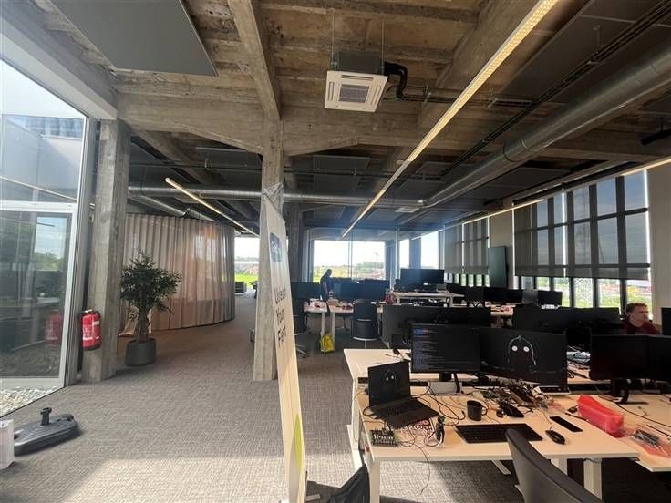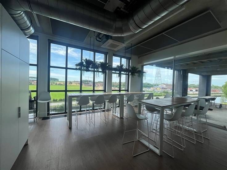 Prijs is 6.350€/maand, 8 parkeerplaatsen inclusief. 6 extra vergaderzalen beschikbaar.