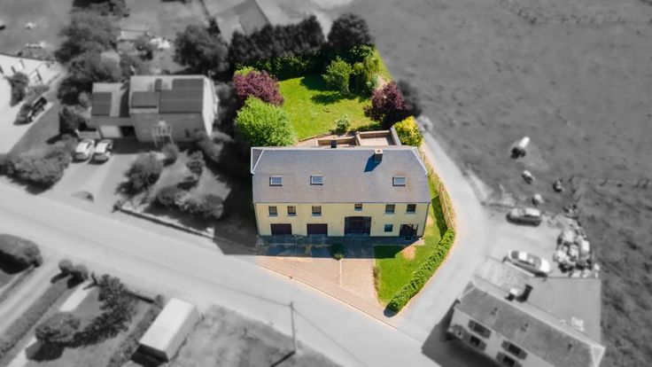 LOUÉ Habergy: Grosse villa de 462m2 ( superficie PEB) 4 façades composée au rez : 2 garages et d'un hall d'entrée. Au 1er étage : un grand séjour ouvert sur la cuisine full équipée, 2 grandes chambres, une grande salle de bains / douches, une arrière cuisine. Au 2ème étage : 4 chambres et une salle de douche.