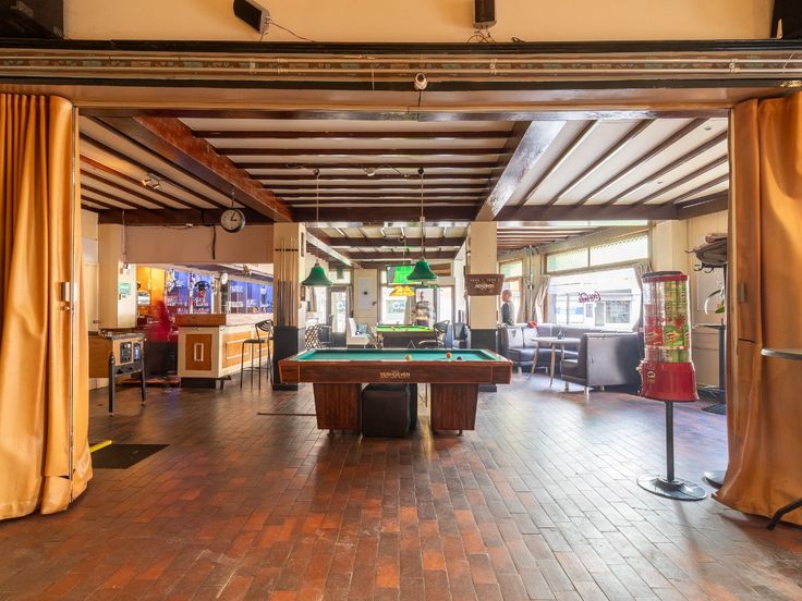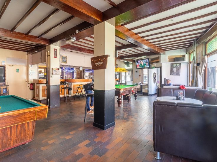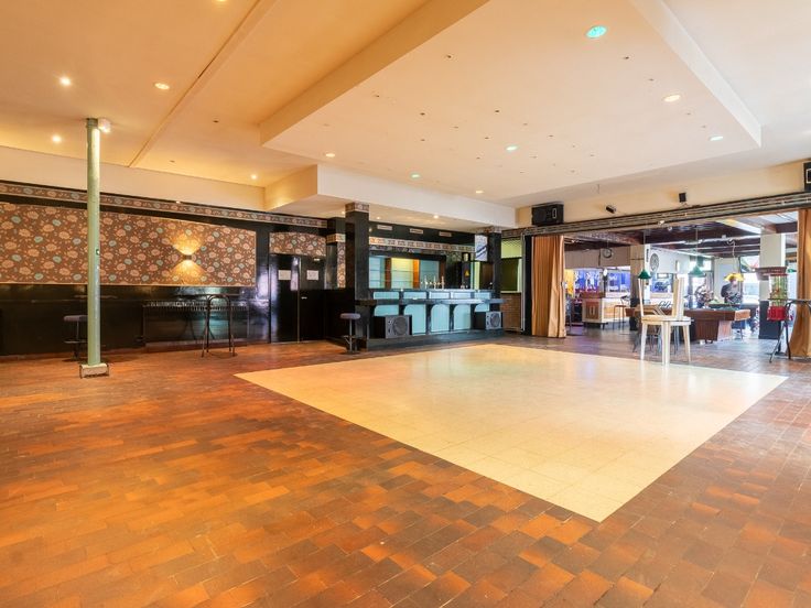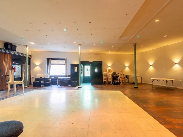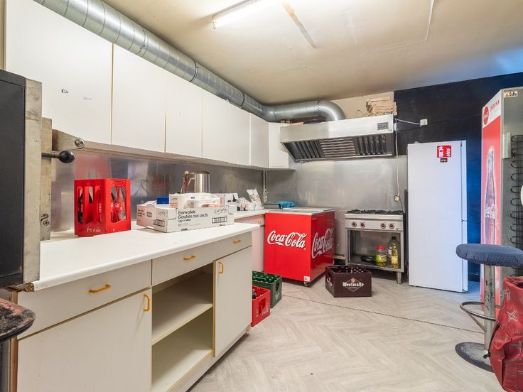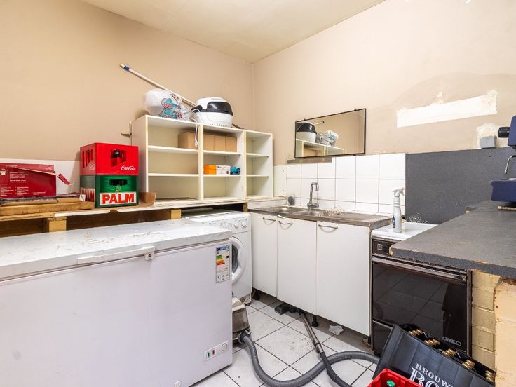 Gelijkvloers: Café met aansluitend een polyvalente ruimte (afscheiden mogelijk) - sanitair - beging - keuken