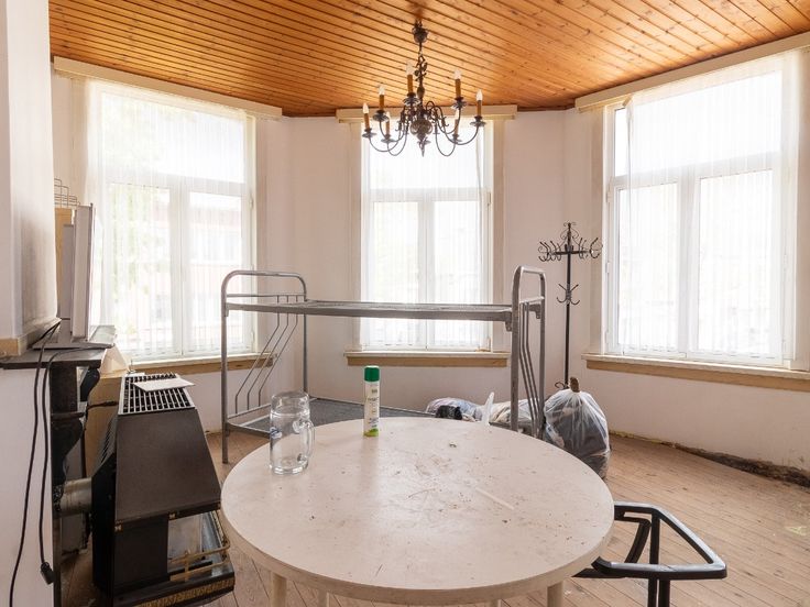 Eerste verdieping: Te renoveren appartement met leefruimte - twee slaapkamers - badkamer