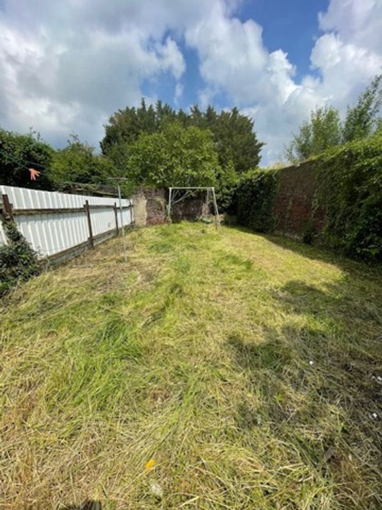 de 3 chambres, d'une salle de jeu, d'une salle de douche à l'étage, d'une cave, d'un passage latéral et d'un jardin.