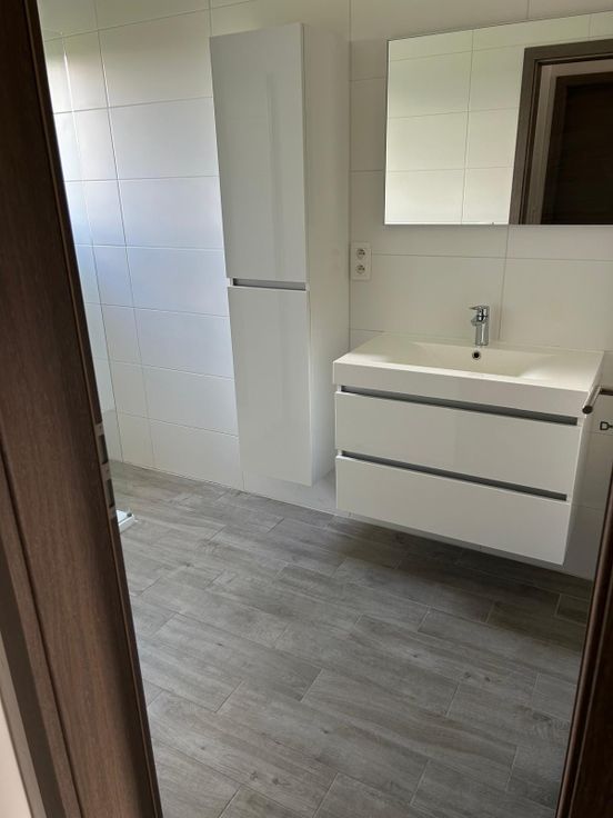 salle de bain avec douche, lavabo, wc indépendant,