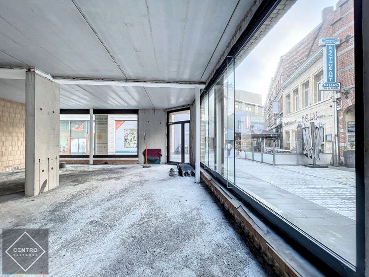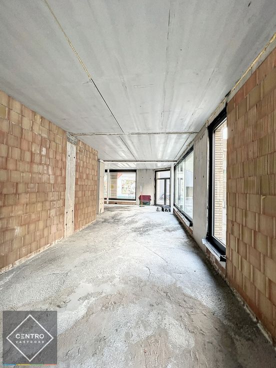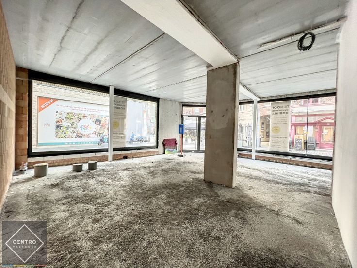 Open kantoorruimte op HOEK-ligging Sint-Jansstraat en Kleine Sint-Jansstraat met véél glaspartijen en aparte vitrine - 2 toegangen (voor publiek via de winkelstraat en privaat via het appartementsgebouw) - 2 aparte toiletten (afvoeren zitten klaar voor toilet en handwasser) - H: 3,65m - 99/1.000sten.