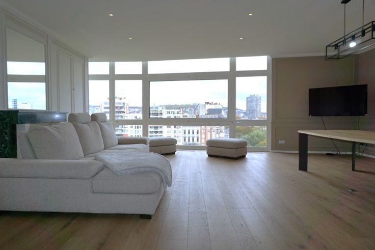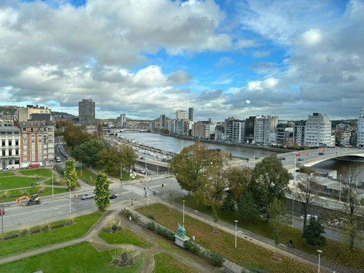 Magnifique appartement de standing de 170m², situé au 7ème étage d'une Résidence au centre de Liège. Il vous séduira tout d'abord par son emplacement très recherché "Les Terrasses" et aussi par la qualité de sa rénovation. Un vaste hall d'entrée en marbre vous accueillera et vous mènera au living avec parquet en chêne et une vue magnifique sur l'esplanade et la Meuse. La cuisine qui est ouverte sur le séjour est entièrement équipée. Il comprend également une buanderie munie de placards et emplacements machines, un WC indépendant, un hall de nuit avec placards encastrés, une salle de douche à l'italienne, une salle de bains (avec double vasque, grande douche à l'italienne, baignoire et WC), 3 chambres avec terrasse (dont une avec placards et 2 avec volets électriques), et 2 emplacements de parking au sous-sol. Chauffage central au gaz et air conditionné dans les chambres, châssis DV en PVC (sauf en façade). Provisions pour charges communes: 316€. Visites sur RDV au 0472/55.02.72 ou au 04/222.31.32.