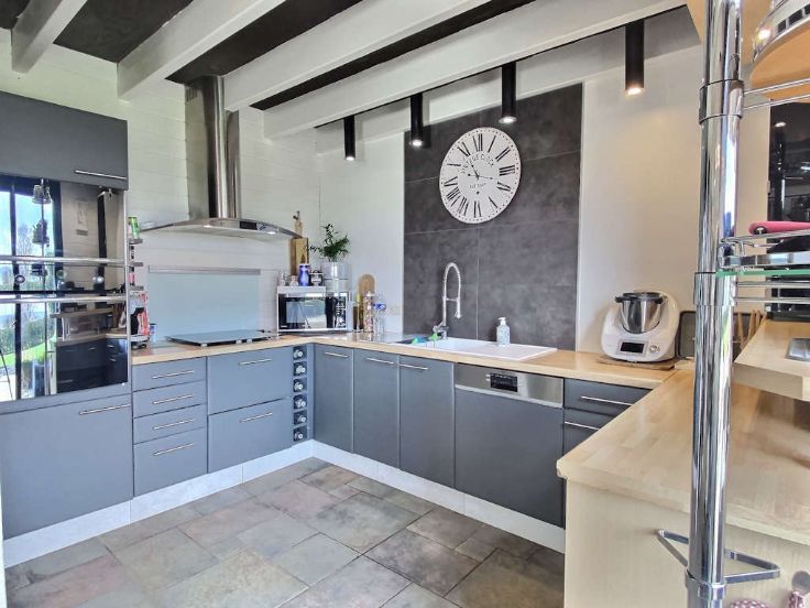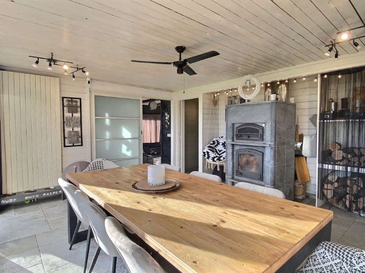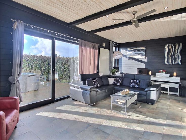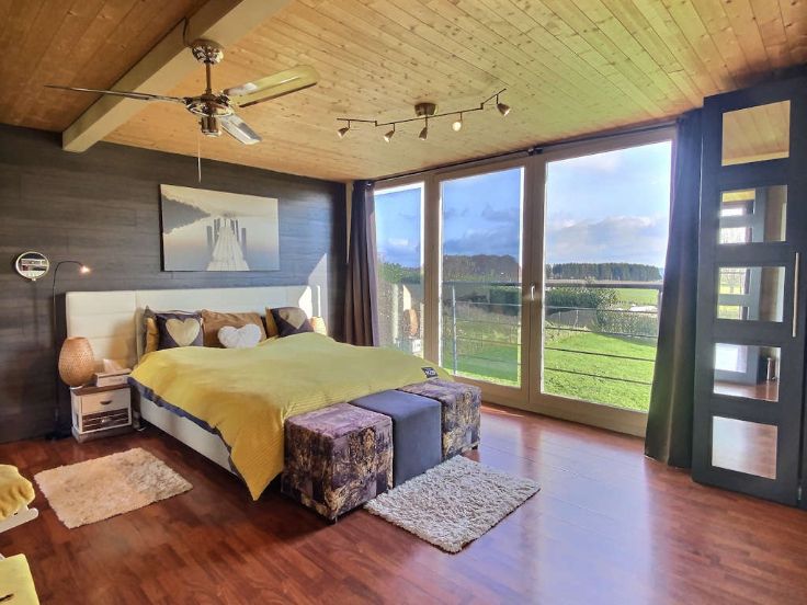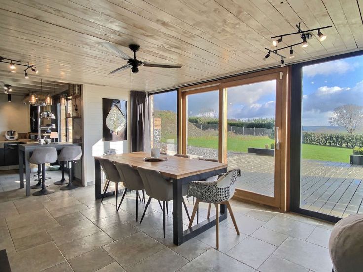 Recente luxe vakwerkvilla met alle comfort en zwembad. ! GEGARANDEERDE LIEFDE OP HET EERSTE GEZICHT! Ideaal gelegen in een charmante dorpje op 5 km van Libramont-Chevigny en al zijn voorzieningen, presenteert Immo-Far een recente, lichte villa van 3 verdiepingen van meer dan 405 m2 op een goed georiënteerd perceel van 11 are en 96 centiares . Deze kwaliteitsvolle houtskeletbouw, gerenoveerd in 2020, zal je overtuigen met zijn grote, lichte, open leefruimtes, aangename indeling, goede energie-efficiëntie, buitenfaciliteiten en ononderbroken uitzicht over het platteland. Op de begane grond een mooie ontvangsthal met apart toilet, bijkeuken met toegang tot de garage voor 2 auto's (48m2)open ingerichte keuken met bijkeuken, woonkamer met Tulikuvi houtkachel, zitkamer met kantoorgedeelte. Boven leidt een nachthal naar 4 slaapkamers, waaronder een master suite, twee doucheruimtes en een apart toilet. De kelder beschikt over een wijnkelder (zichtbaar vanuit de ontvangsthal), een ontspanningsruimte, een stookruimte en twee opslagkelders. De buitenkant nodigt uit om te ontspannen met zijn 3 terrassen toegankelijk vanuit de woonkamers (200m2), een mooie, intieme, volledig omheinde tuin, een verwarmd zwembad (7mx x 3,5m) en een gloednieuwe 5-persoons jacuzzi. Een bezoek is een must, dus wacht niet te lang!