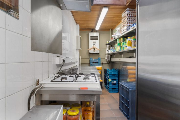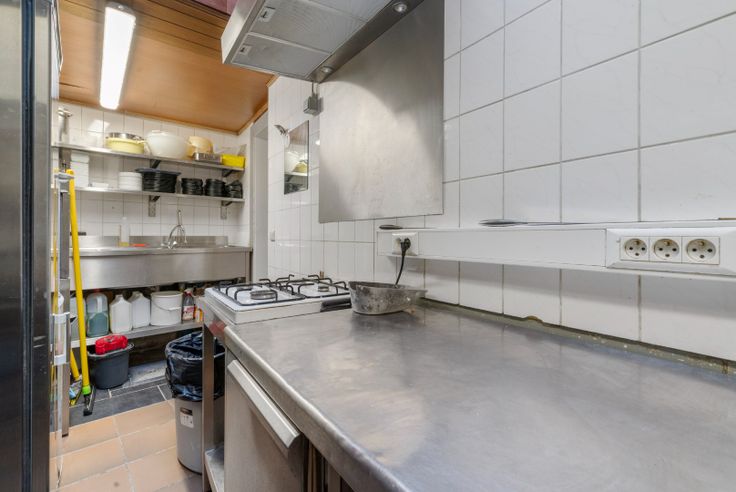Volledig ingerichte keuken, voorzien van nieuwe ovens en ijsmachine, frigo's en volledig bemeubelde gelagzaal.