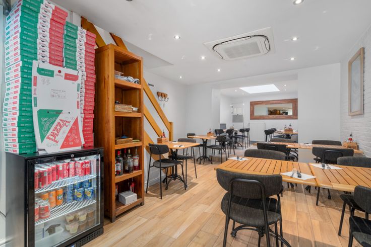 Volledig ingericht als pizza-restaurant met gelijkvloers gelagzaal, bar, ingerichte keuken, afwaslokaal en kelder met frigocel, eetruimte op verdiep (ideaal voor groepen) en toiletten. Tweede verdiep kan nog verder worden ingericht met woonfunctie.