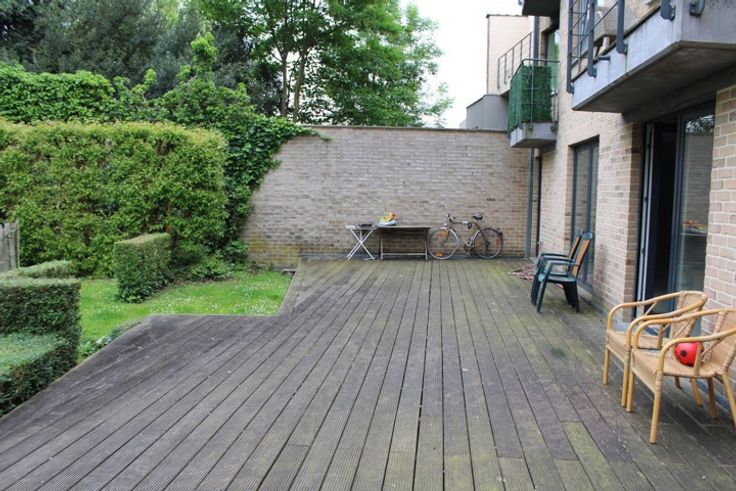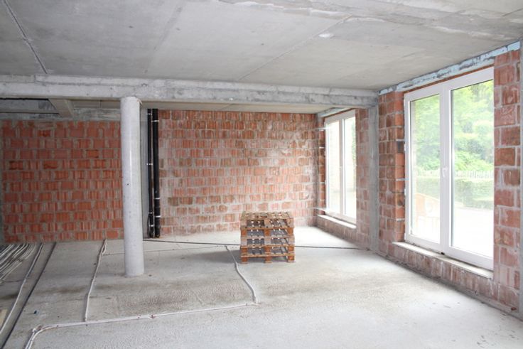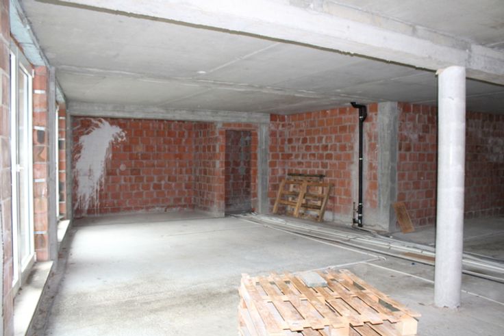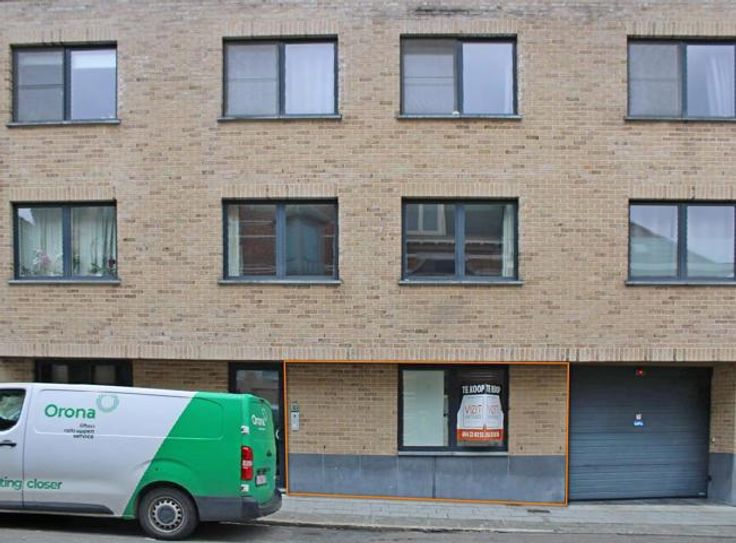 Casco handelspand van 104m² commerciële ruimte met groot terras op het gelijkvloers en parkingplaatsen ondergronds (optioneel aan 22.000eur per plaats).