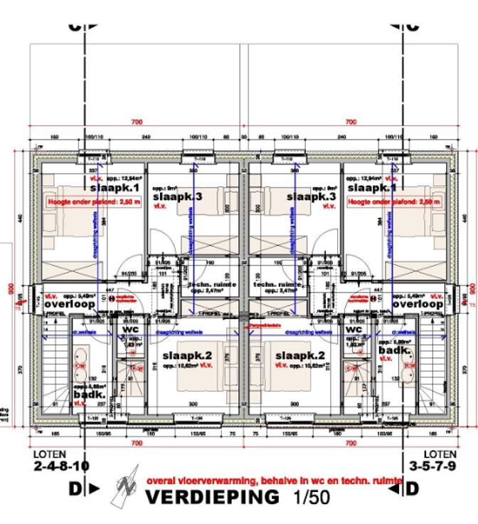 VERDIEP: trap; nachthal, 3 ruime slaapkamers, toilet, technische ruimte, badkamer.