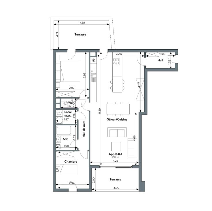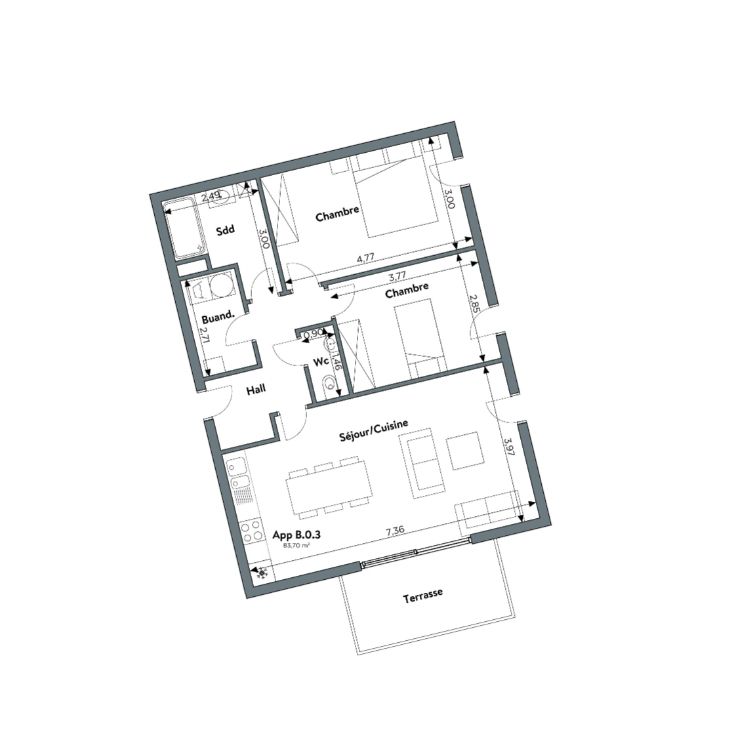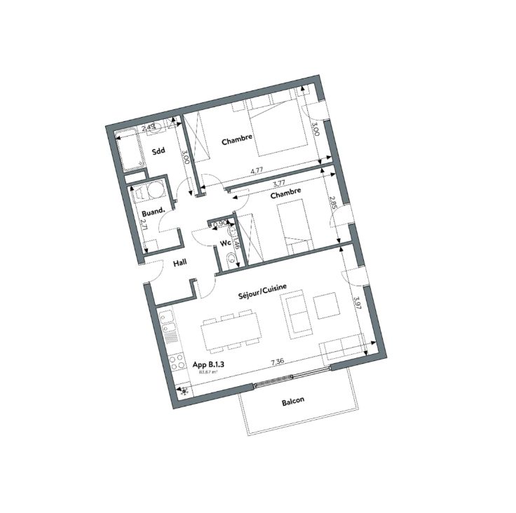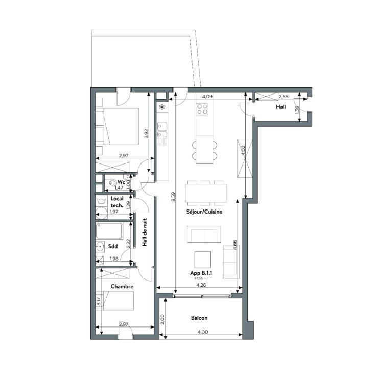 • 1,2 ou 3 chambres