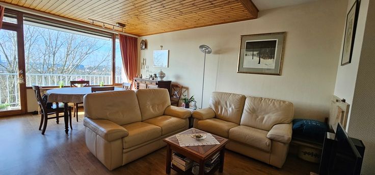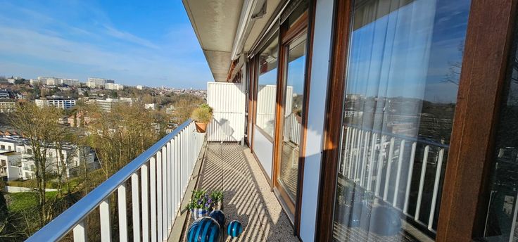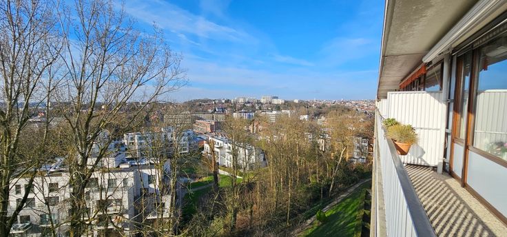 Uccle, dans le Domaine du Wolvenberg, lumineux appartement situé au 8ème étage du bâtiment arrière avec une vue imprenable, offrant une superficie habitable de +/- 70m² . Situé dans un quartier proche des commerces, des transports en commun, des écoles et du ring, . Il se compose d'un hall d'entrée , living de +/-26m² avec accès à une terrasse, cuisine équipée, salle de bain avec un coin buanderie, 1 chambres de 16m² avec accès a la 2 éme terrasse , toilette séparées avec lave-main, cave. Double vitrage en bois partout avec une banne solaire ainsi que des screens , chauffage central au mazout, ascenseur, . Charge: 230 euros/mois. ( provision d'eau , chauffage au mazout et commun, fonds de réserve, roulement ). En option : box fermer n°80, 30.000€ ( Longueur 5.8/largeur 3m). Superficies données à titre indicatif, les informations reprises dans l'annonce sont non contractuelles. Plus d'informations sur la situation via notre site : www.parvissimmo.be